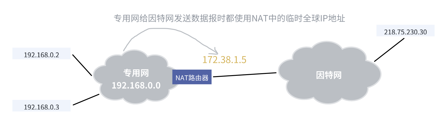 ------>私有地址只能用于一共机构的内部通信,而不能用于和因特网的主机通信。即私有地址只能用作本地地址,而不能用作全球地址。