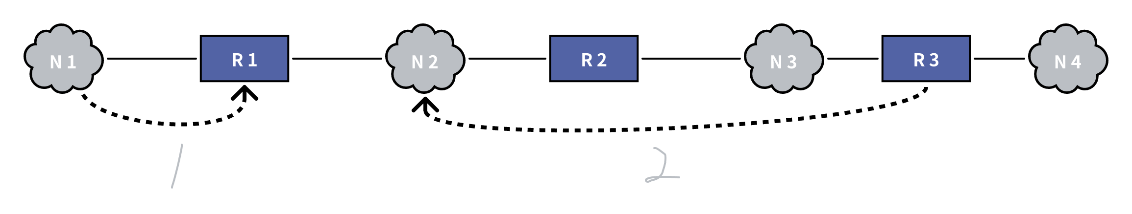 路由器到非直连网络的距离定义为经过的路由器数加1