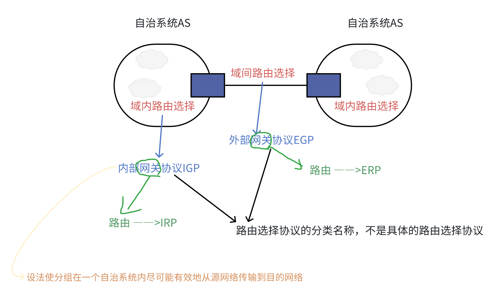 自治系统边界路由器ASBR:和本自治系统外的其他自治系统交换路由信息