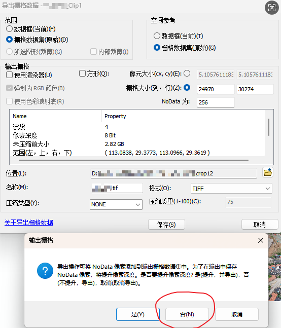 1、两张TIF图片在裁剪的时候范围相同,但最后输出的图片中,图像像素的宽度和高度不同。后来发现这是由于像元大小的不同,导致后来输出的像素大小不同。