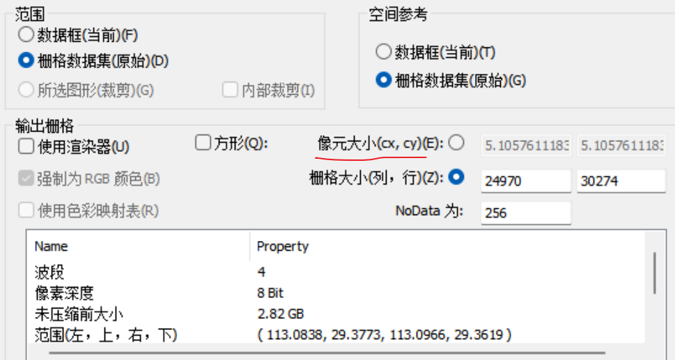 就想着如果把两个TIF图片的像元统一大小,是不是输出的像素宽高就相同了,然后就尝试了这一设想,然后就有了第二个问题