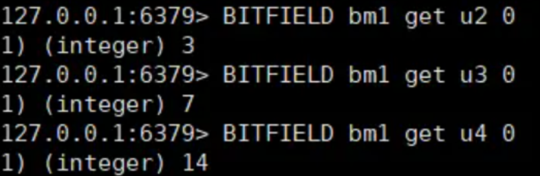 命令格式 :BITFIELD key GET u<位数> <offset>说明: