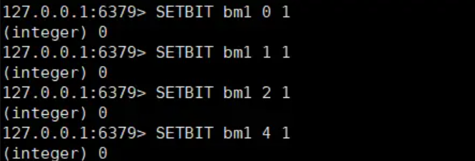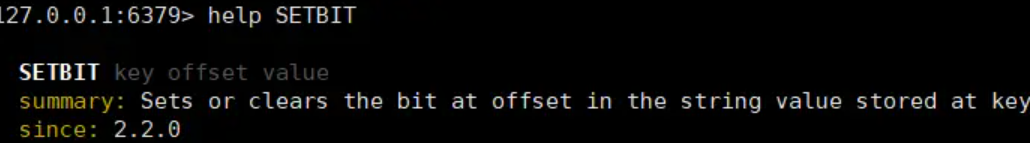 | SETBIT | 给指定 key 的 Bitmap 设置指定偏移量(offset)的 bit 值(0/1),offset 从 0 开始 |