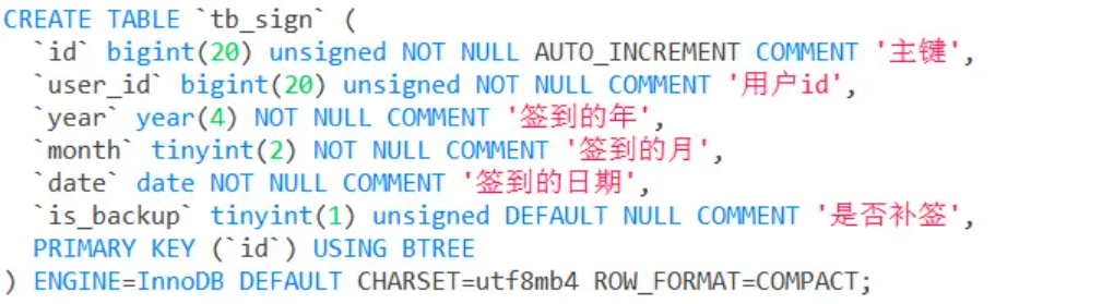 sign:user:{用户ID}:{年份}(如sign:user:10086:2025) - offset:代表「当月第 N 天 - 1」(如 1 号 = 0,5 号 = 4,31 号 = 30)