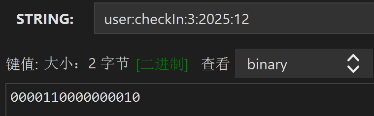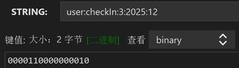 sign:{用户ID}:{年-月}作为 Bitmap 的 Key(例如sign:10086:2025-12),按「用户 + 年月」维度隔离签到数据; - Offset 计算:以「当月第几天 - 1」作为 Bit 位偏移量(例如 1 号对应 offset=0,15 号对应 offset=14),保证每个日期对应唯一的 Bit 位;