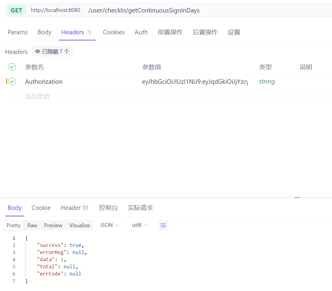 | 请求路径 | /user/checkIn/getContinuousSignInDays |
