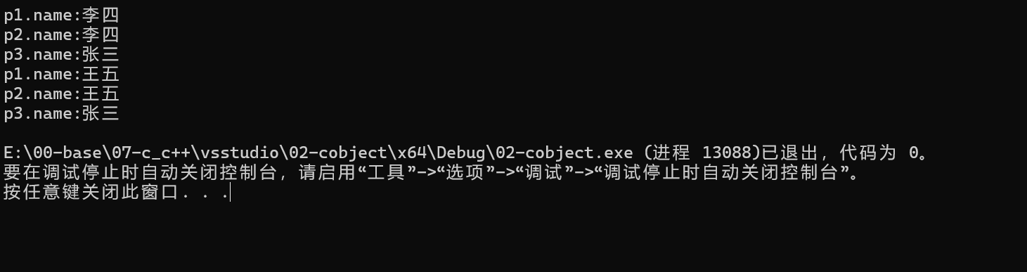 可见我们分别对p2和p3实现了浅拷贝和深拷贝,运行后结果如下: