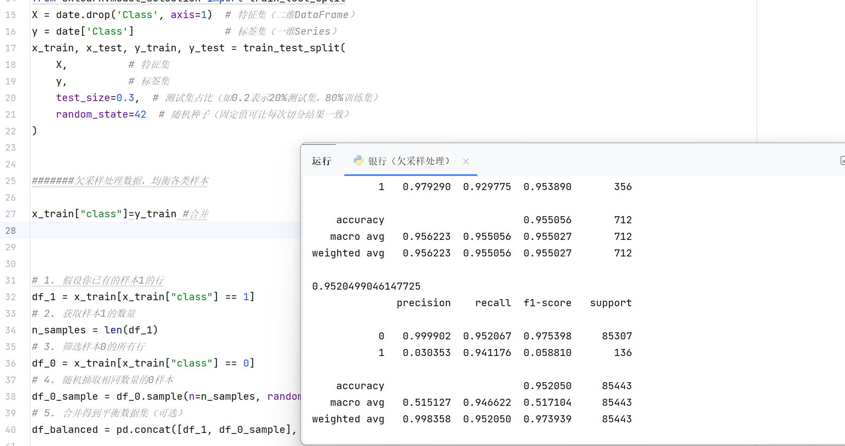 从大量的0类数据中选出和1类数据相同数量的样本来训练模型。