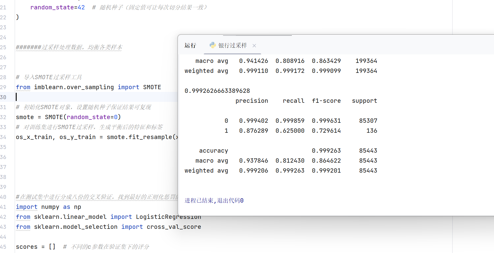 # 初始化SMOTE对象,设置随机种子保证结果可复现
