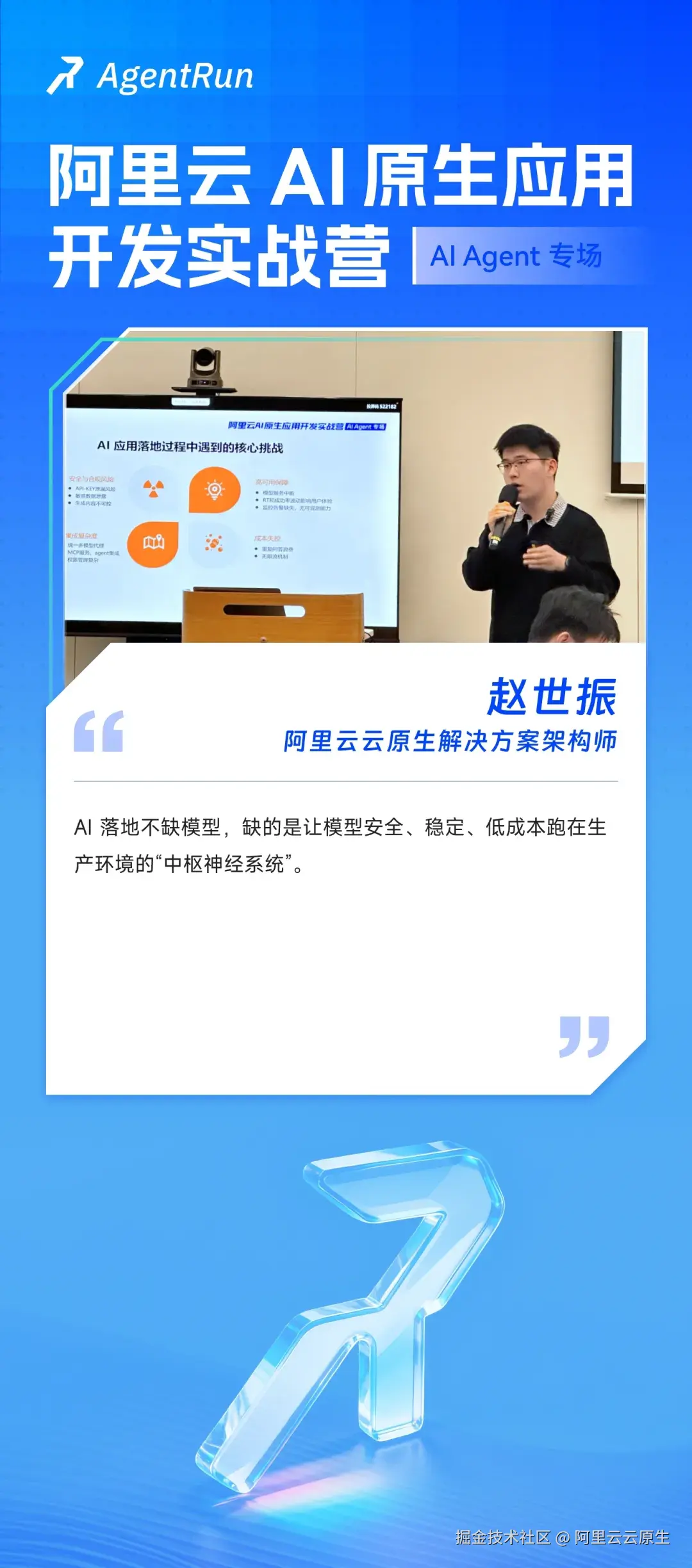 阿里云函数计算 AgentRun 研发负责人赵庆杰为大家讲解:围绕 Agentic AI 落地实践,其依赖记忆、上下文、模型治理与安全工具调用等基础设施,而传统架构在支撑这类高动态、状态化智能体时,常困于资源僵化、状态复杂和运维成本高。Serverless 以按需弹性、自动扩缩、强隔离和零运维,为每个 Agent 会话提供轻量、安全的运行环境,天然契合 Agentic AI 的执行模式。深度融合二者,不仅破解基础设施瓶颈,更释放其在自动化、个性化与复杂工作流中的创新潜能------让企业以云原生方式"运行智能",驱动业务跃迁。