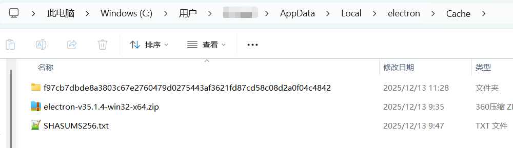 以上操作的目的是强制让electron/install.js使用本地安装包和密钥文件来安装electron。