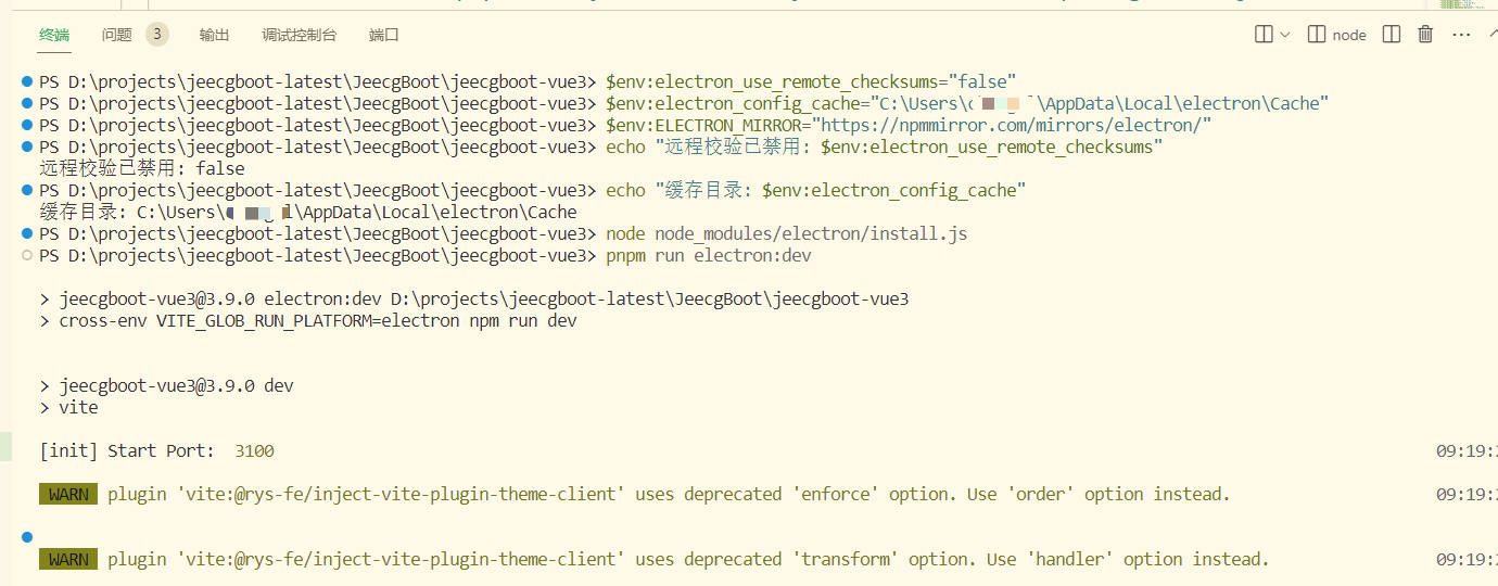pnpm install,其他依赖安装好了后,再单独安装electron。