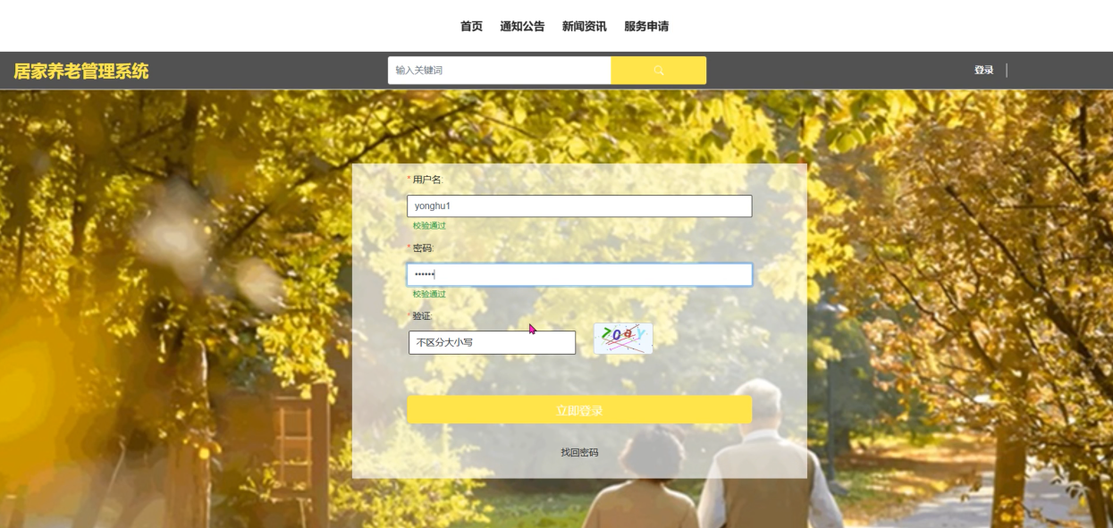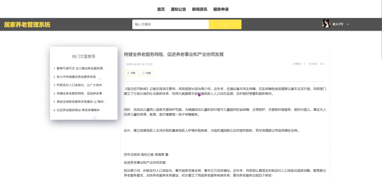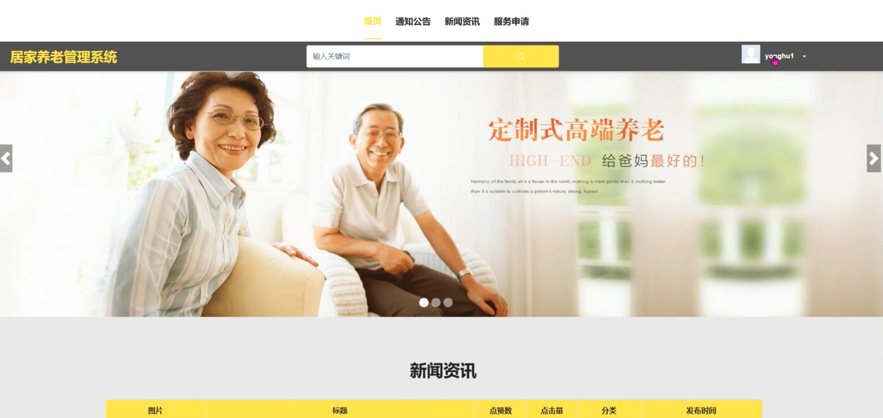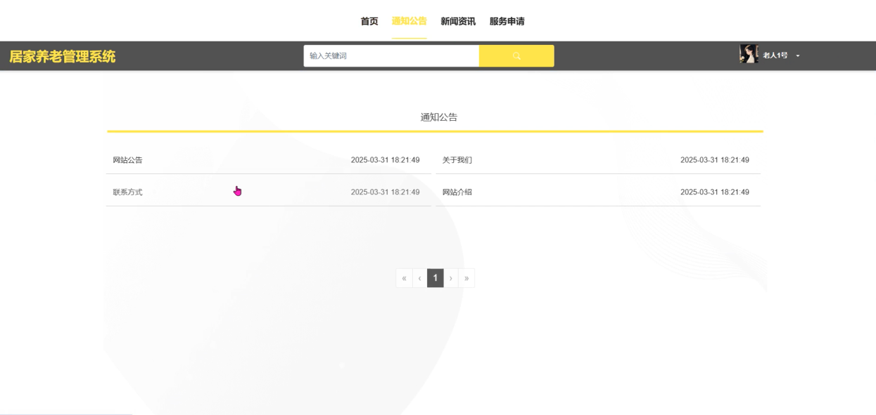 首页:提供最新通知公告和新闻资讯的浏览功能,方便老人了解最新的服务信息。