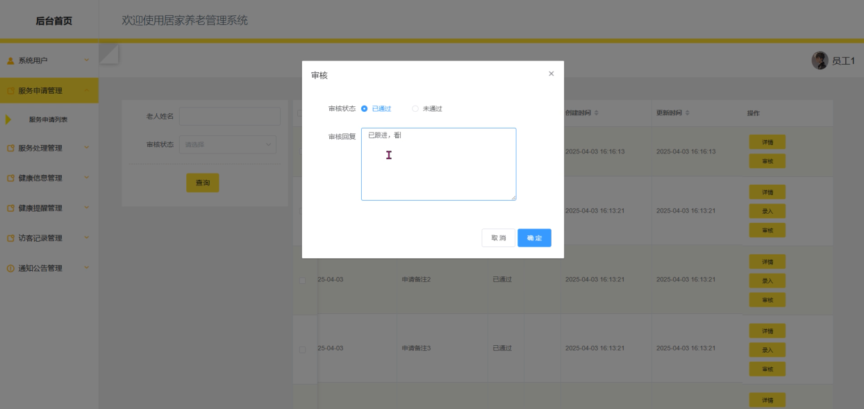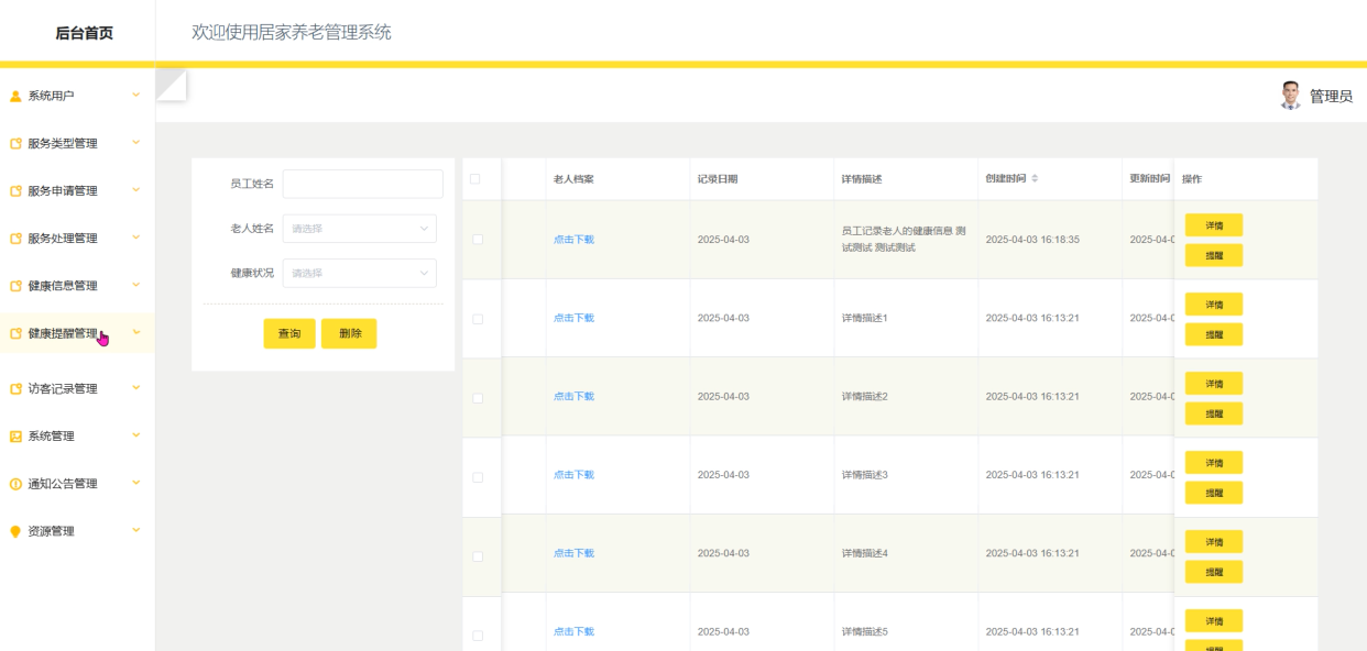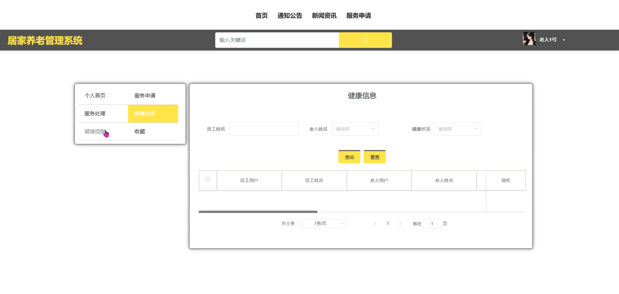 本项目的目的是设计并实现一个居家养老管理系统,通过利用现代信息技术来整合和优化居家养老服务的管理流程。该系统旨在为老年人提供一个便捷的平台,使他们能够方便地申请所需服务、获取健康提醒及接收最新的通知公告,同时支持员工用户和管理员高效地进行服务处理、资源管理和信息维护,以应对传统居家养老服务中存在的效率低下和资源分散问题。