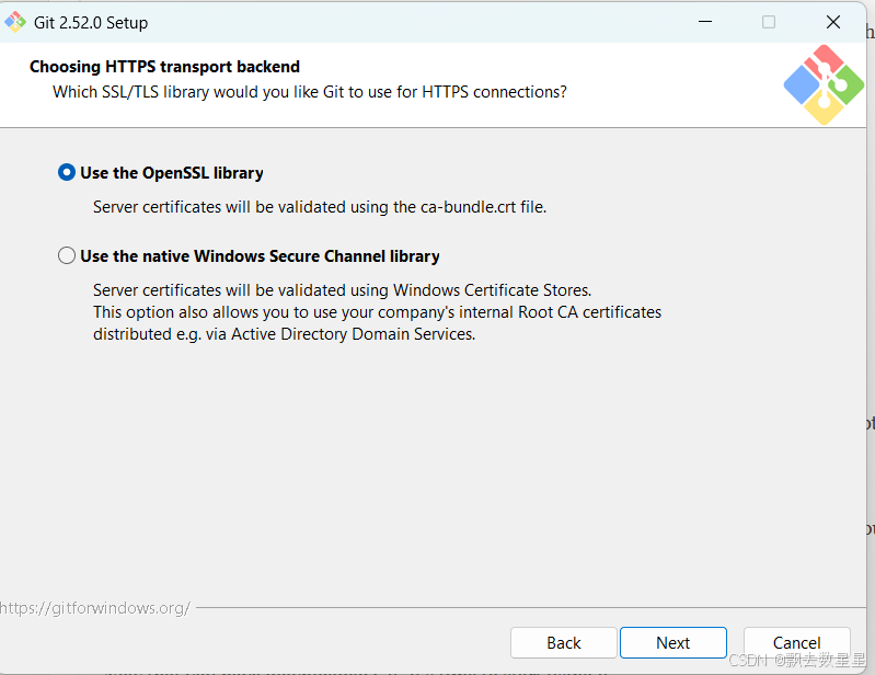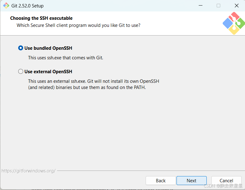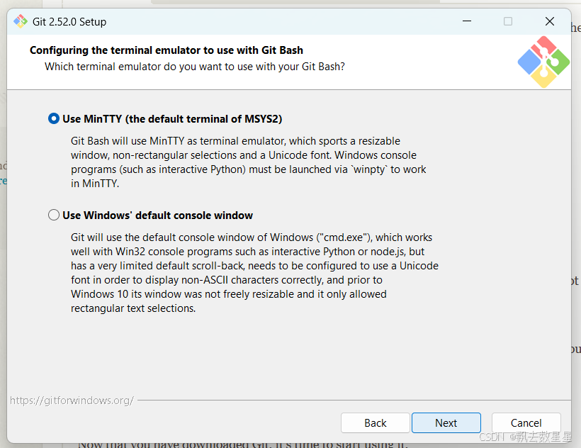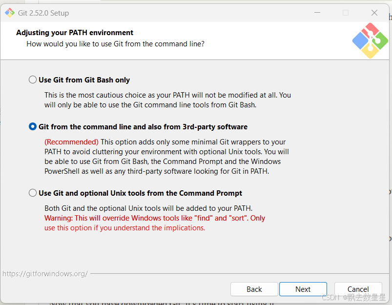 继续默认选择推荐的,从命令行以及第三方软件进行Git,点击next