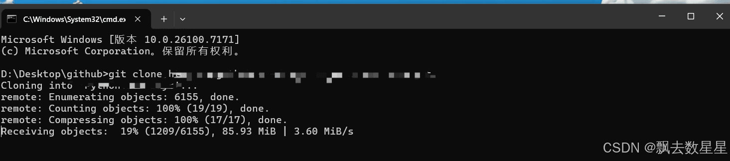 然后到你想部署到本地的文件夹,然后直接在红框出单击,输入cmd,然后enter,在命令行输入git clone [刚才复制的链接]