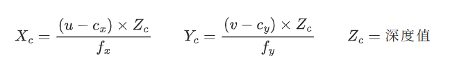 RGBD 相机能同时拍到 "像素(u,v)" 和 "深度(Zc,即物体离相机的距离)",结合内参,就能反推出物体在相机坐标系里的 3D 坐标(X_c, Y_c, Z_c):
