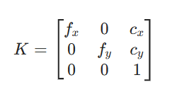 (c_x、c_y):"图像主点的像素坐标"------ 相机光轴(镜头中心的射线)在照片里对应的像素点(理想情况下是照片的中心,比如 1280×720 的照片,cx≈640,cy≈360)。