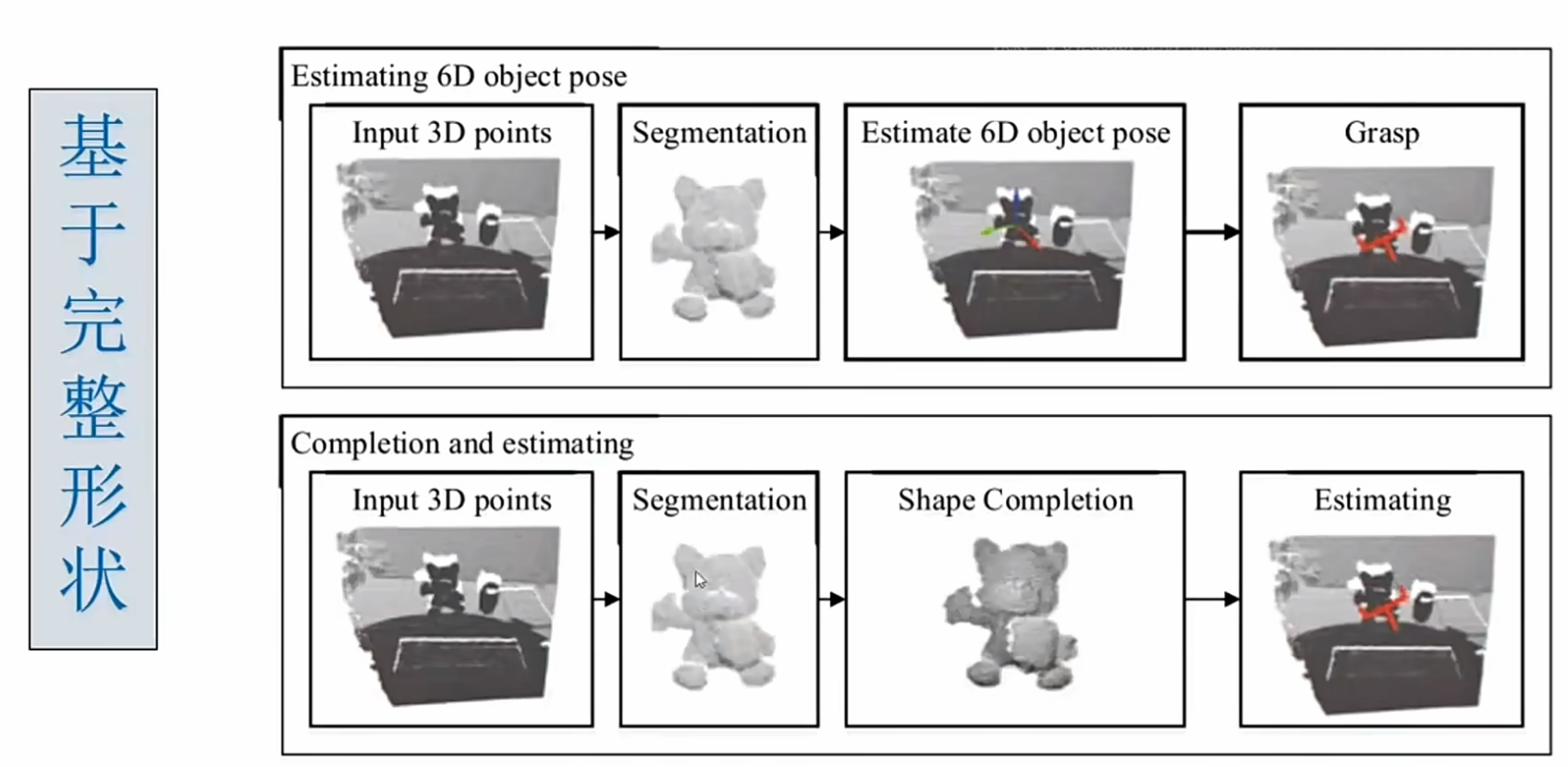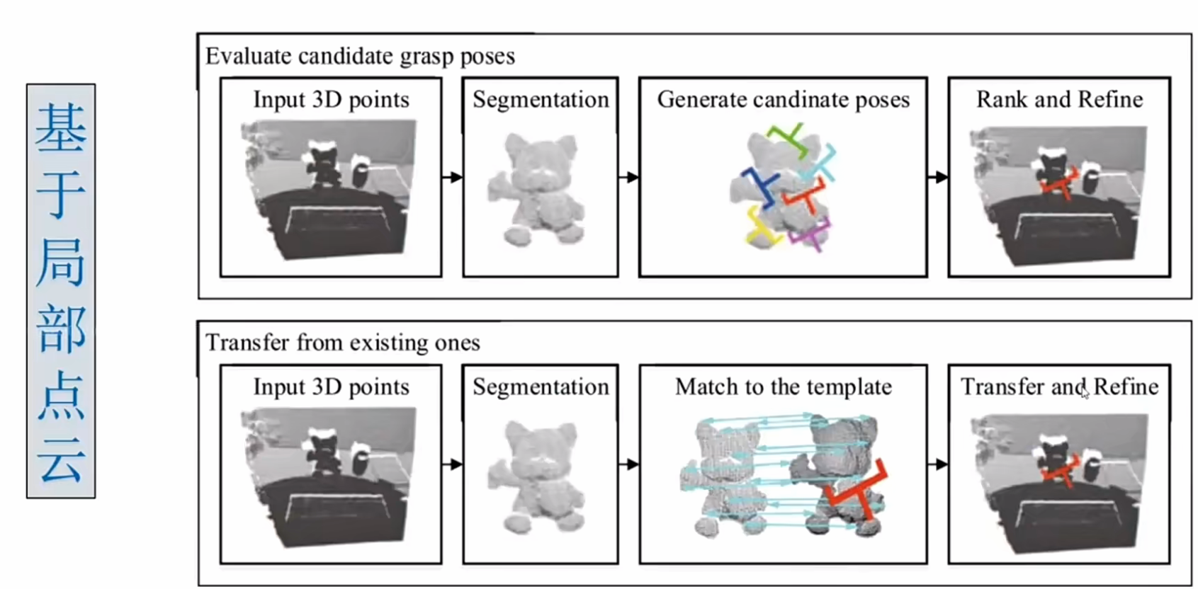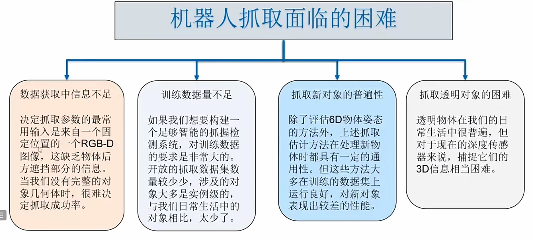 基于视觉的抓取算法的目的:给定一个包含物体的场景、一个机械手模型,算法以该场景的视觉信息为输入,计算出一个最优的抓取位姿,使机械手在该位姿下可以稳定地抓取物体。