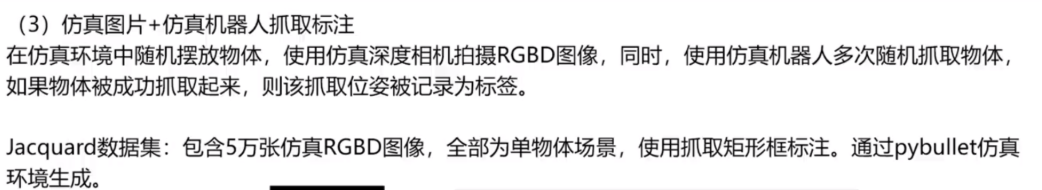 - 用 PyBullet 仿真环境批量生成:包含 670 万个 "抓取位姿标签 + 对应图像块",全部是单物体场景;