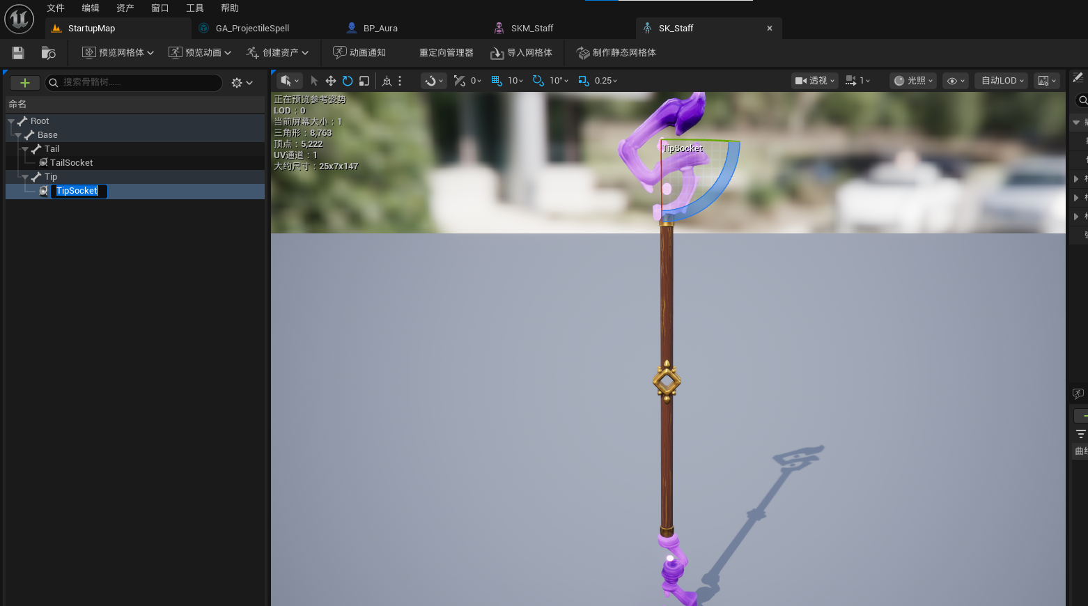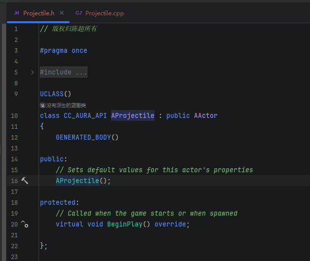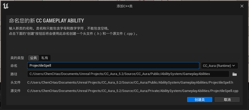 (1) 首先基于之前创建的技能基类创建一个子类,命名为ProjectileSpell,我们将其作为这种炮弹类的技能的特定类型的技能类