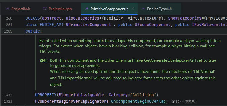 这是一个FComponentBeginOverlapSignature声明,再转到FComponentBeginOverlapSignature定义去看看: