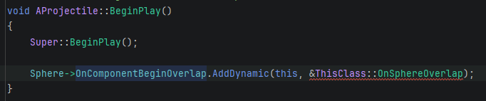 Sphere->OnComponentBeginOverlap.AddDynamic(this, &ThisClass::OnSphereOverlap);
