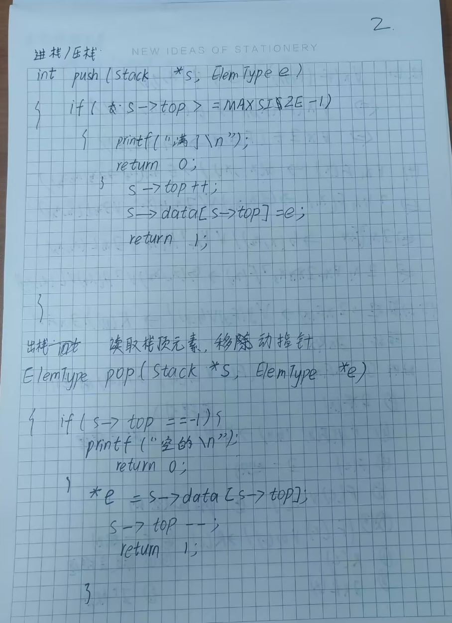 int Pop (SqStack * S, DataType *e) /*S指向顺序栈指针,e出栈元素*/