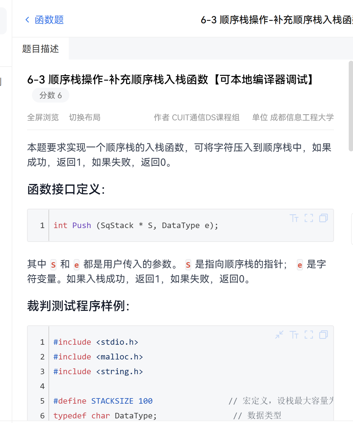 void Initstack(SqStack *stack) // stack为指向顺序栈的指针