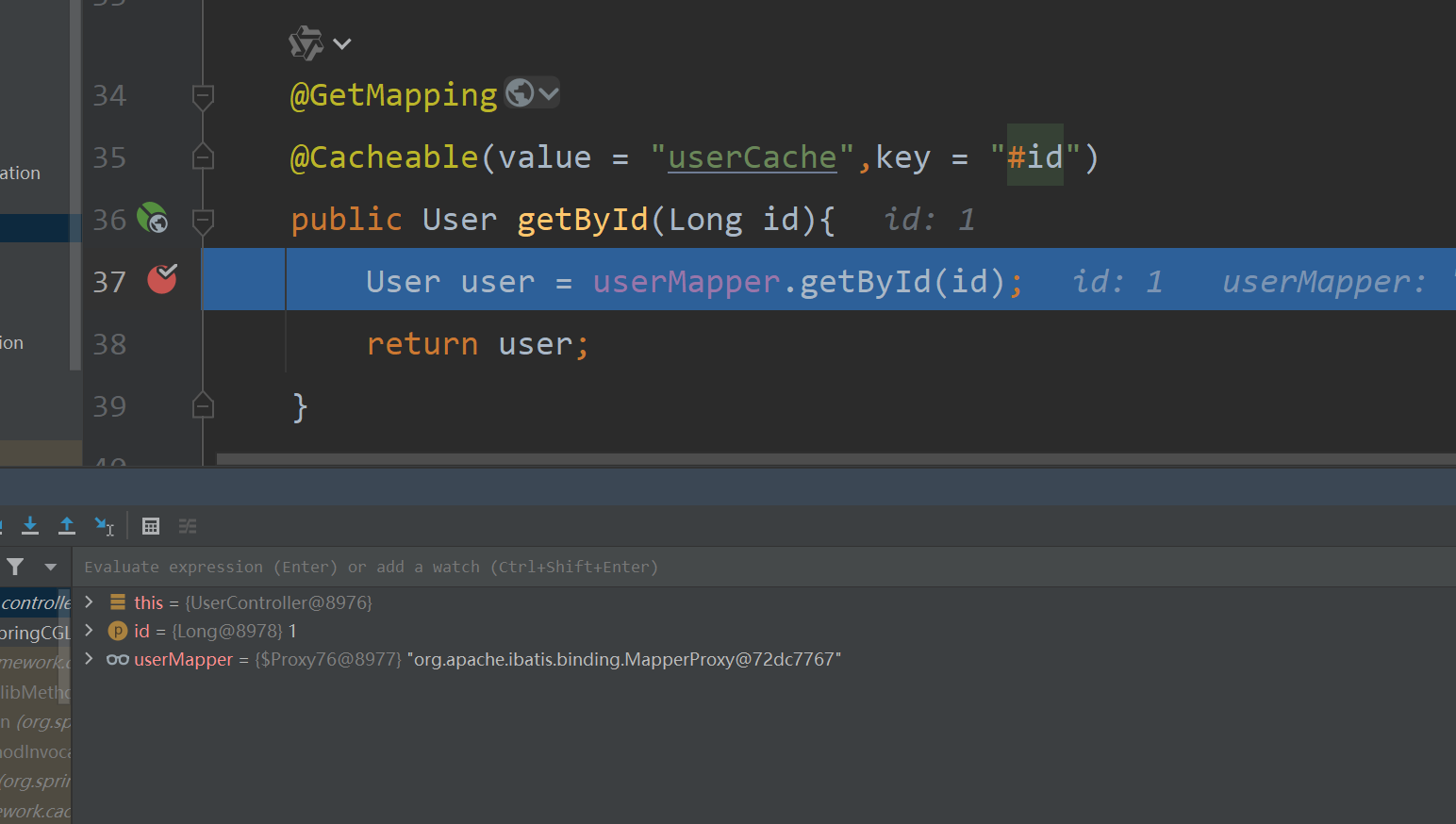 @Cacheable(value = "userCache",key = "#id")中的key是和value代码作为::后面的参数。