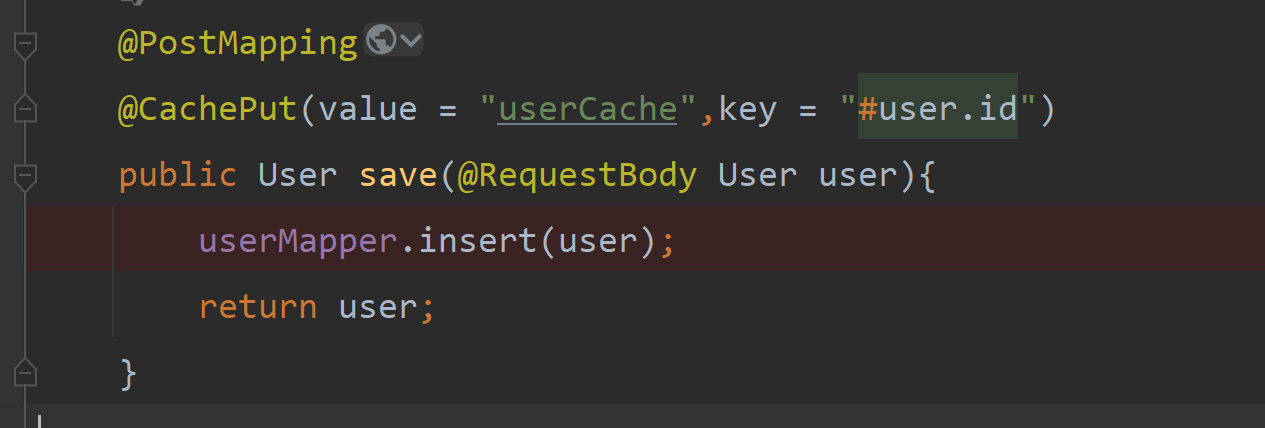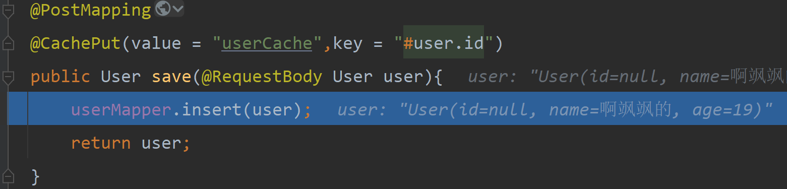 @CachePut(value = "userCache",key = "#user.id"),可以根据user参数进行解析出来。