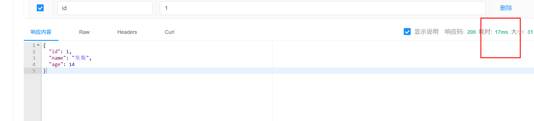 现在redis中已经有了key值,我们再执行以下逻辑(根据耗时可以看出直接从redis中获取了):