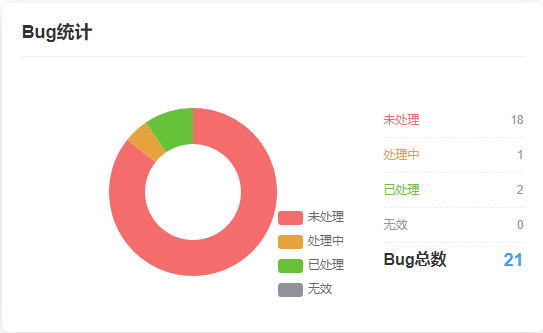 Bug统计模块不仅提供了当前状态分布的可视化呈现,还详细列出了各项指标: