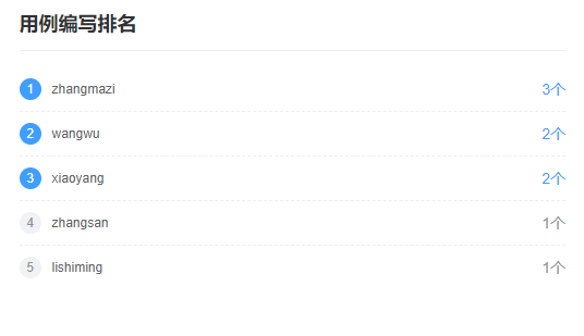 此外,用例编写排名(Top 5)激励团队成员积极参与测试建设: