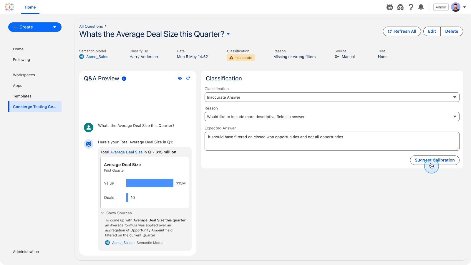 Tableau Next 中的 Q&A 校准,通过测试与引导优化让智能问答更准、更可验证;