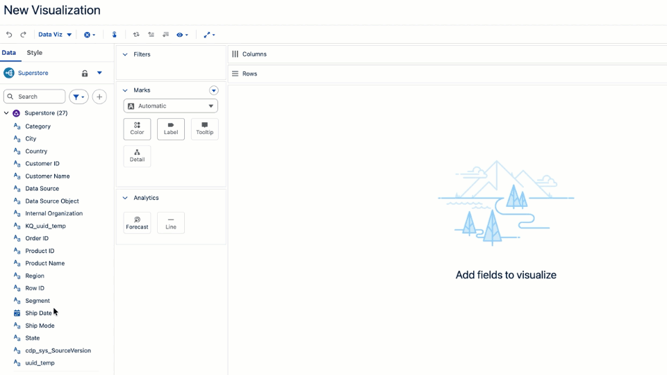 通过全新的效率快捷操作提升你的创作速度。双击数据字段即可将其快速添加到可视化中,并可在工具栏中一键隐藏或显示标签。这些快捷方式能帮助你更快地创建新的可视化,并更高效地探索数据。