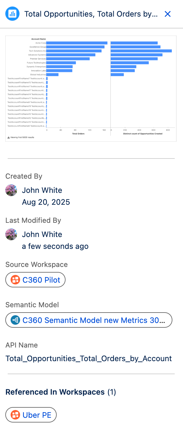 你可以在侧边的详情面板中直接查看资源的缩略图、工作区以及语义模型等信息。这样能够更清晰地了解资源在日常工作流程中的使用方式与价值。