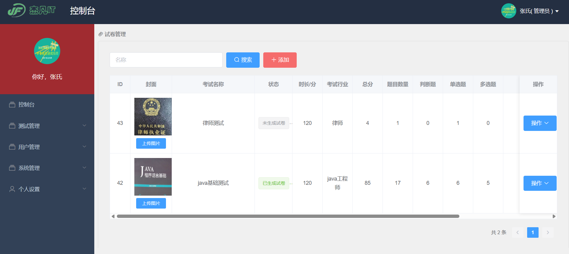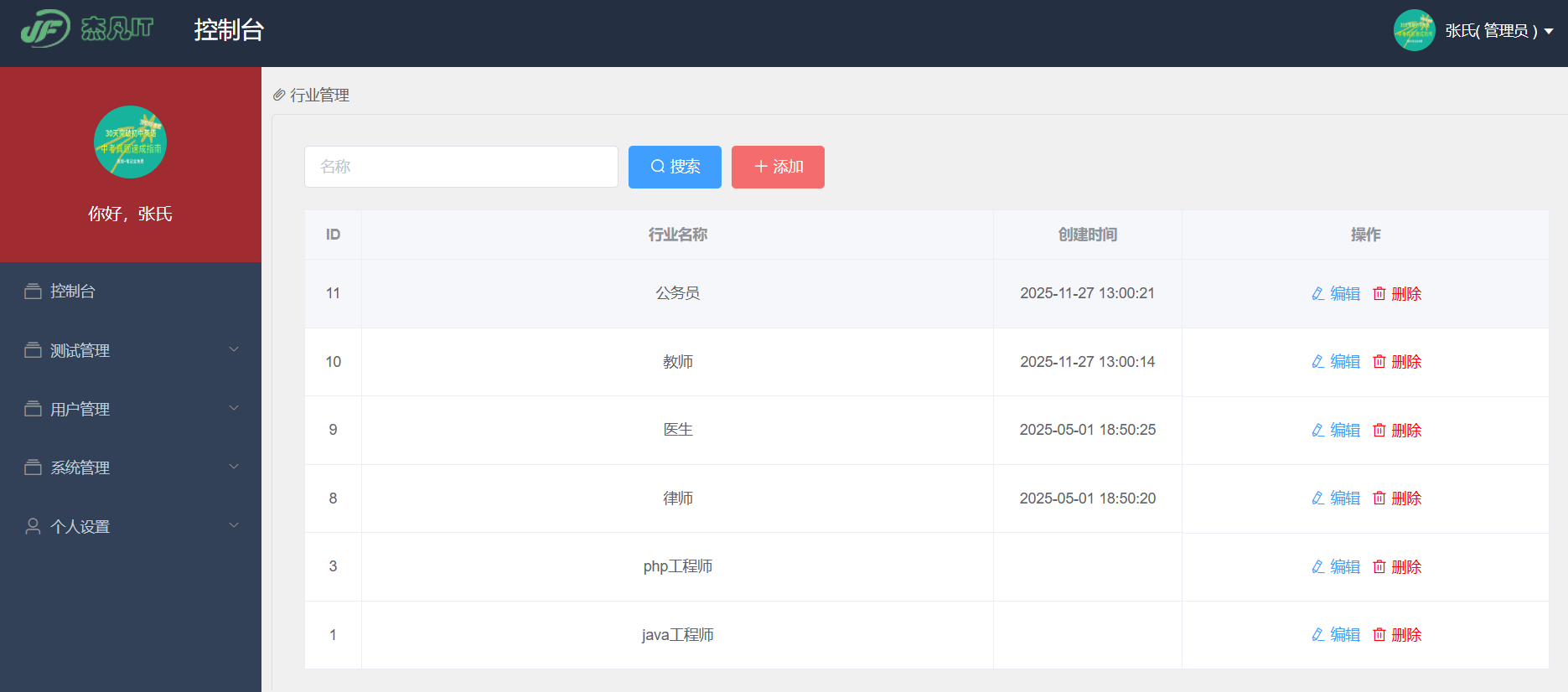 - 行业/课程管理:维护行业或课程分类,为题目和试卷进行分类管理。
