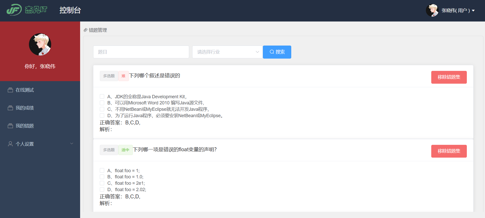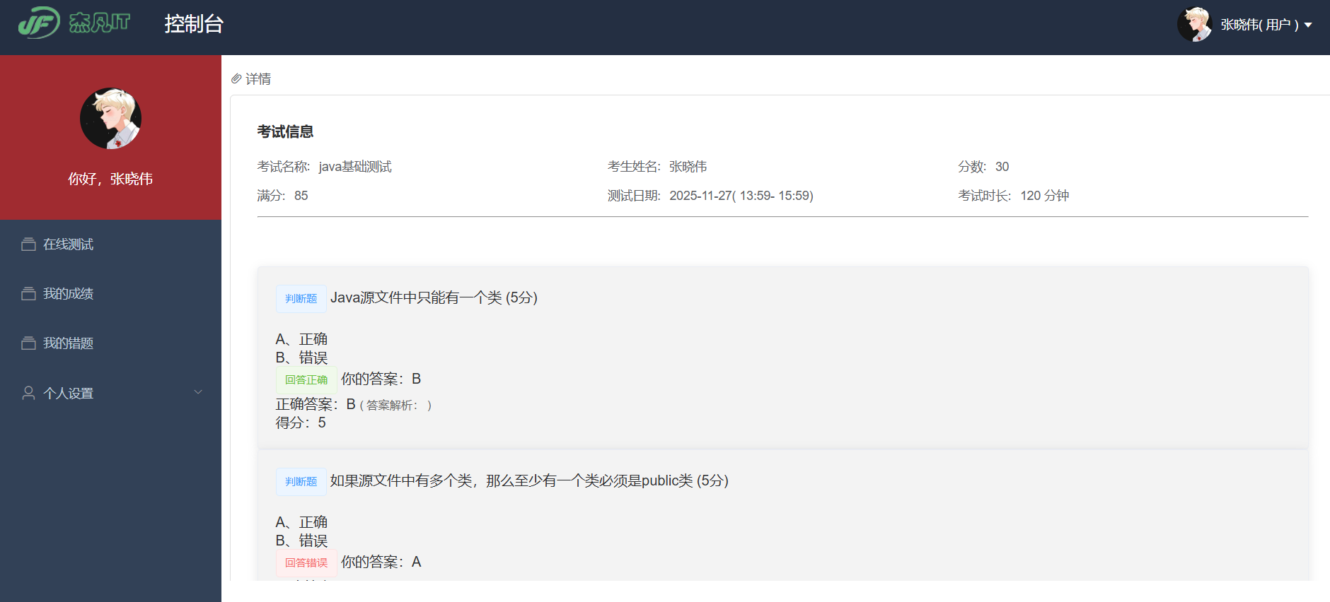 - 错题回顾:查看历次考试中答错的题目,进行知识点巩固。