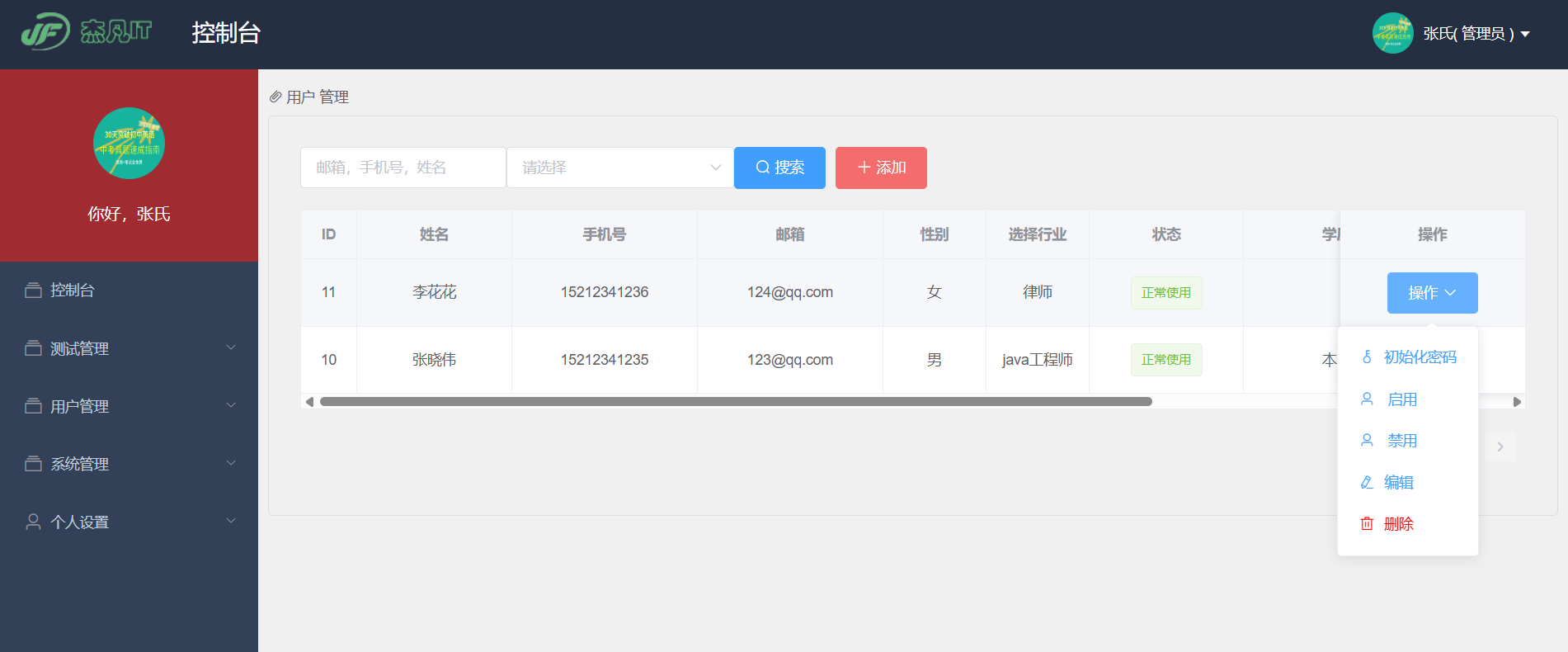 - 用户管理:管理系统用户(包括考生和管理员),进行用户信息的增删改查。