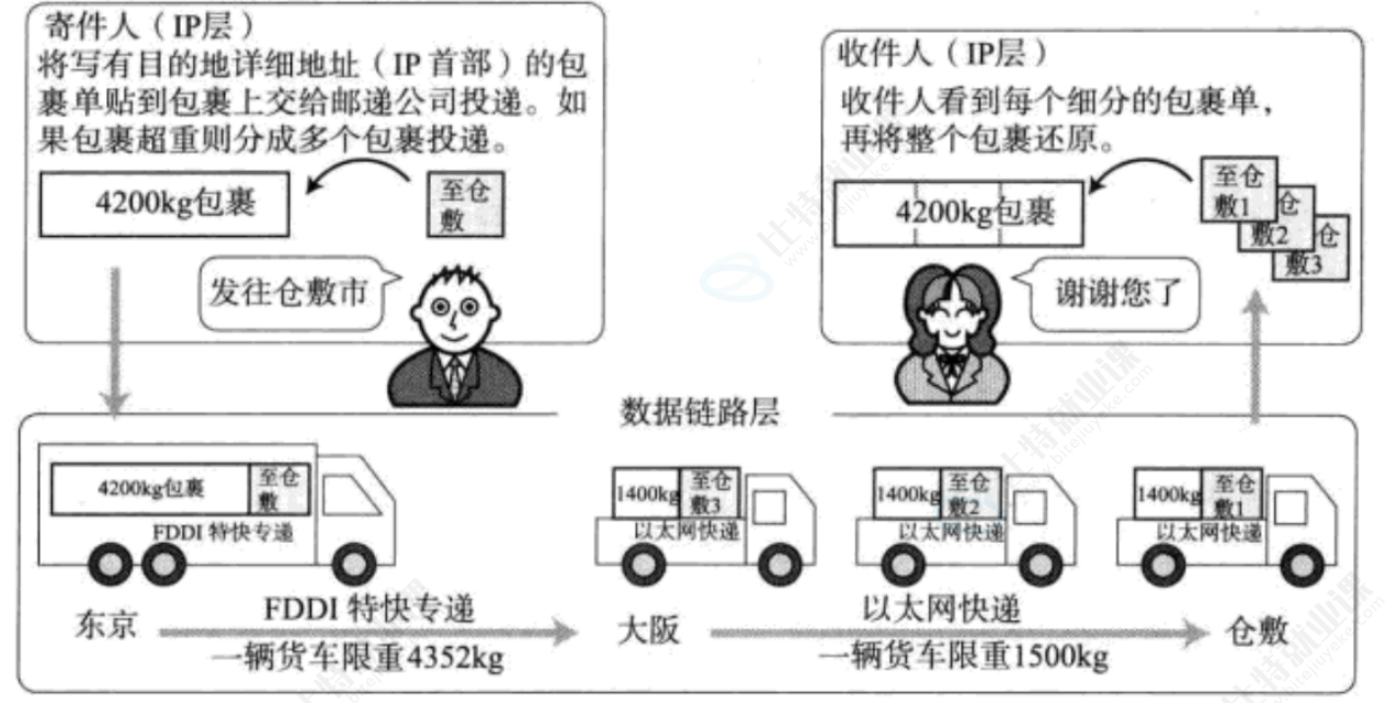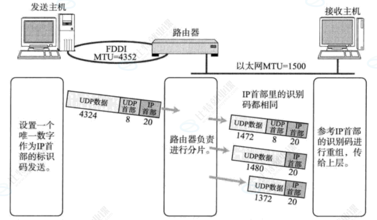 由于数据链路层MTU的限制,对于较大的IP数据包要进行分包。