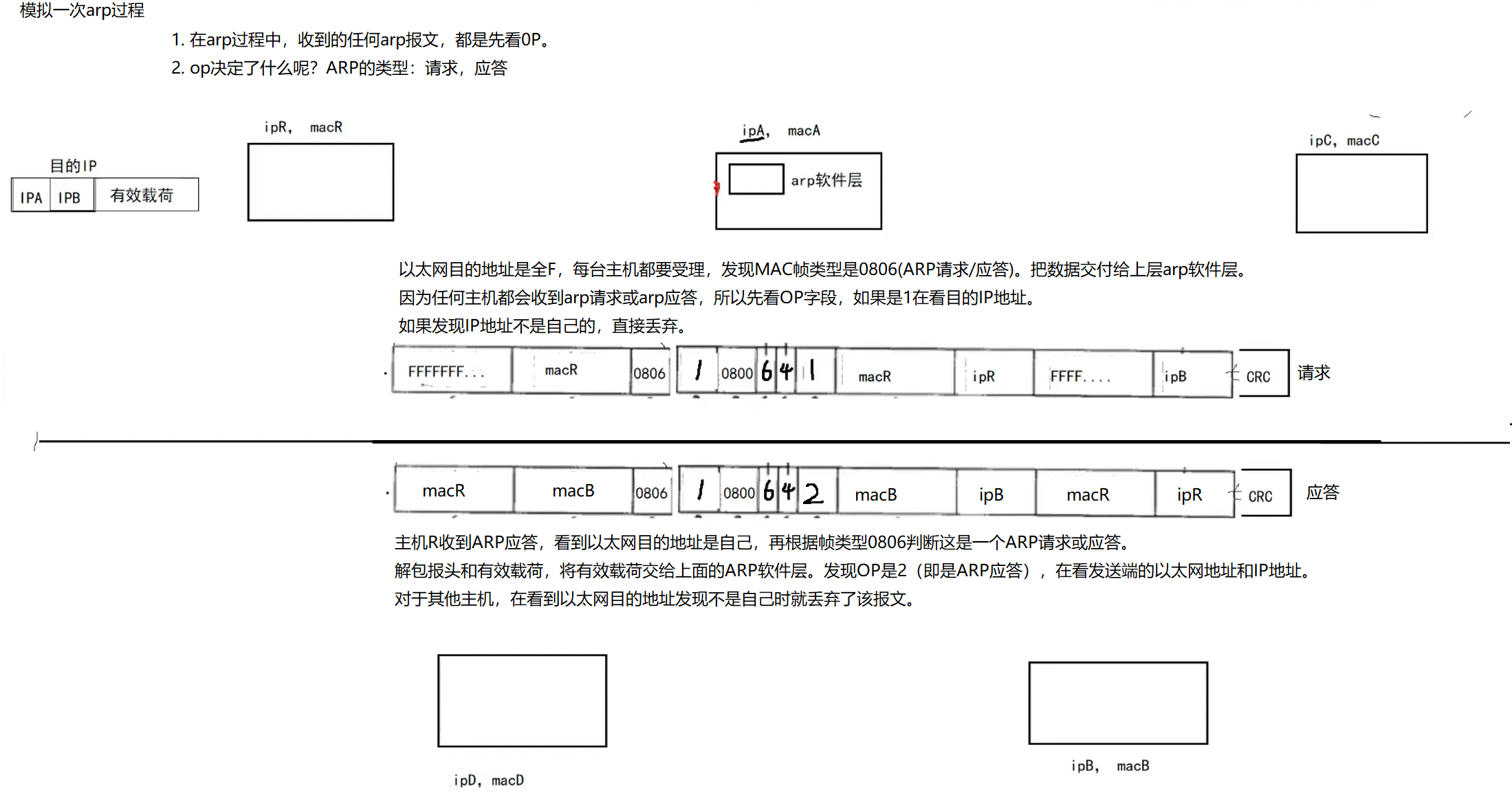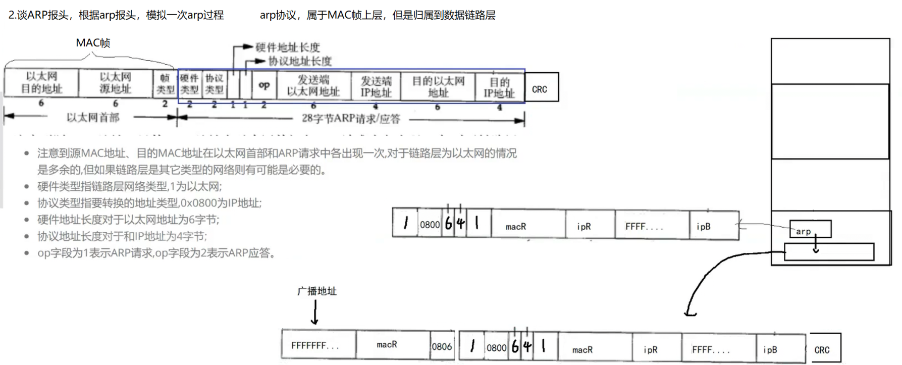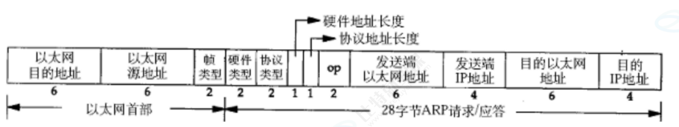 - op字段为1表示ARP请求,op字段为2表示ARP应答。