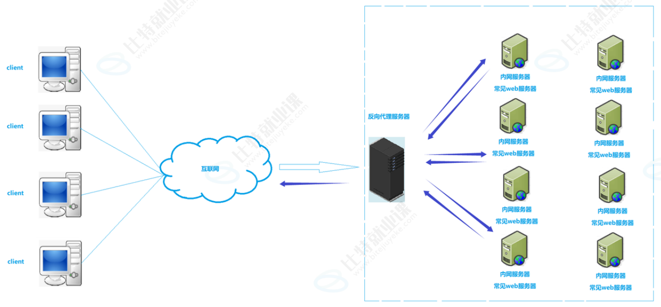 反向代理,代理的是服务器,类似于二房东,你以为你跟房东交互租房呢,其实不是,你是在跟二房东租房,,反向代理通常由服务器端假设,隐藏服务器IP,并实现静态资源缓存以及负载均衡的作用