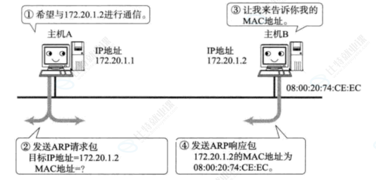 地址解析协议,即ARP(Address Resolution Protocol),是根据 IP地址 获取 物理地址 的一个 TCP / IP协议 。 主机 发送信息时将包含目标IP地址的ARP请求广播到网络上的所有主机,并接收返回消息,以此确定目标的物理地址;收到返回消息后将该IP地址和物理地址存入本机ARP缓存中并保留一定时间,下次请求时直接查询ARP缓存以节约资源