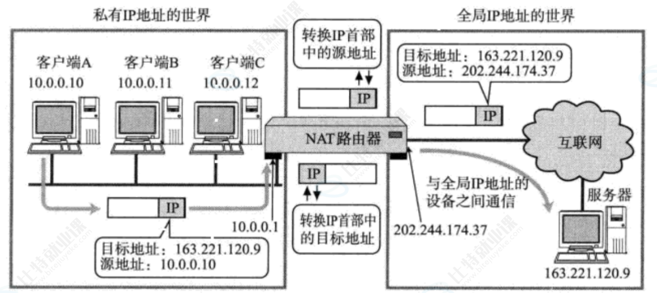 B.址转换又称地址翻译,用来实现私有地址和公用网络地址之间的转换