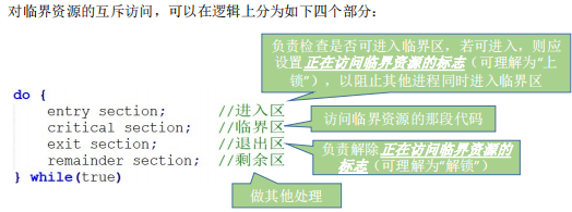 进入区和退出区是负责实现互斥的代码段。临界区是进程中访问临界资源的代码段,也可称为临界段。