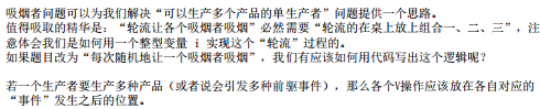 ②要求奇数号哲学家先拿左边的筷子,然后再拿右边的筷子,而偶数号哲学家刚好相反。用这种方法可以保证如果相邻的两个奇偶号哲学家都想吃饭,那么只会有其中一个可以拿起第一只筷子,另一个会直接阻塞。这就避免了占有一支后再等待另一只的情况。