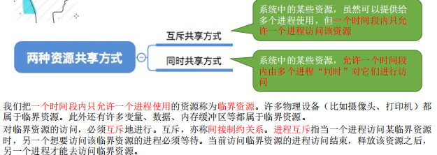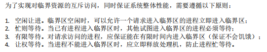 对临界资源的访问,需要互斥的进行。即同一时间段内只能允许一个进程访问该资源。