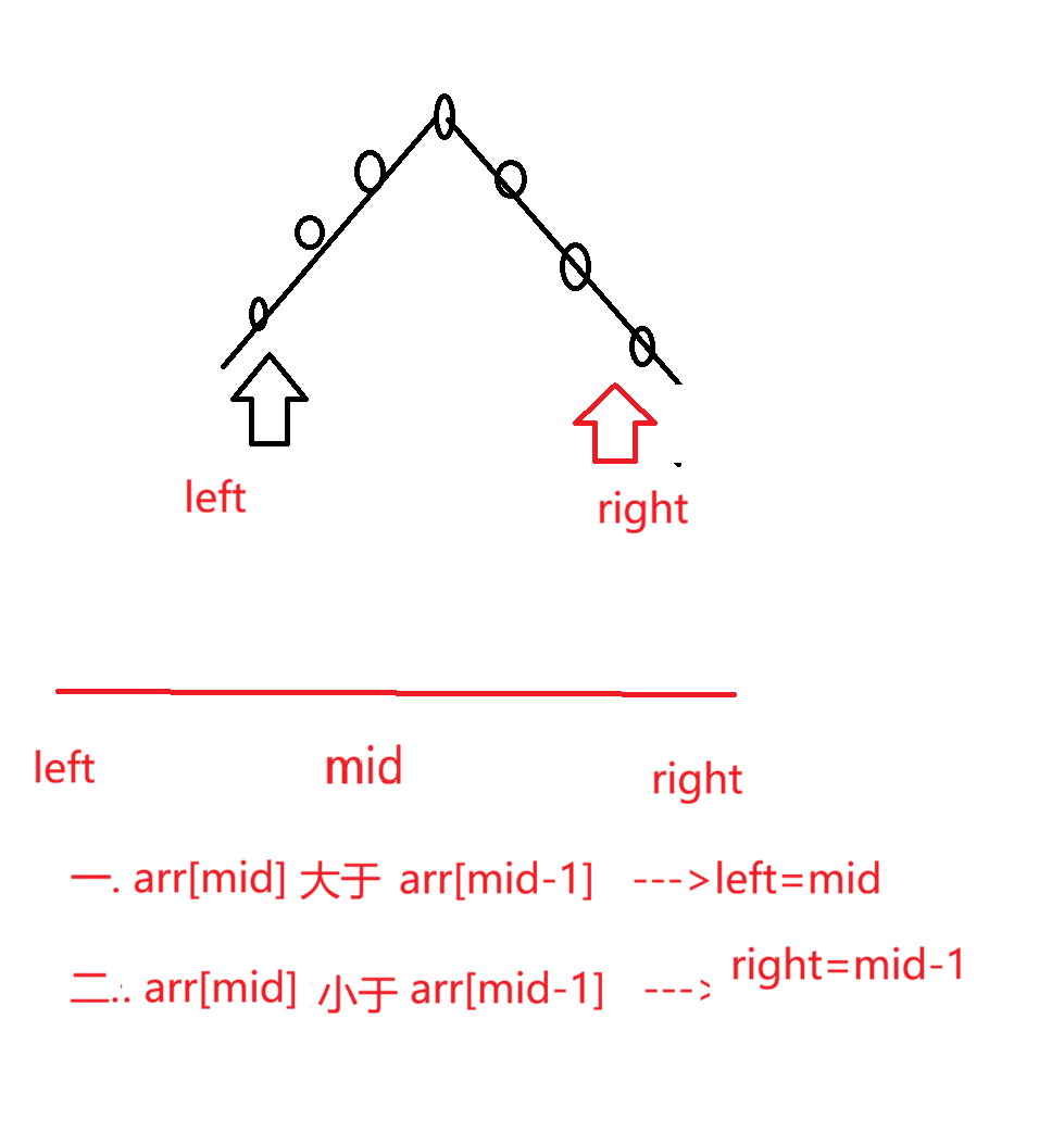 else right=mid-1;//我们要找的是峰值,所以需要向左移动