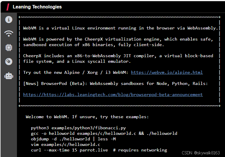WebVM是一款基于WebAssembly技术的浏览器虚拟机,可直接在浏览器中运行完整的Linux环境,无需服务器支持